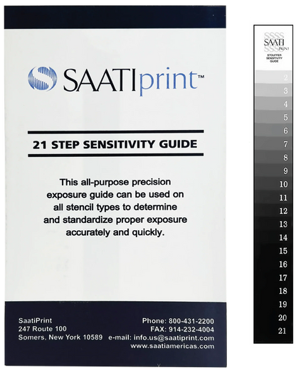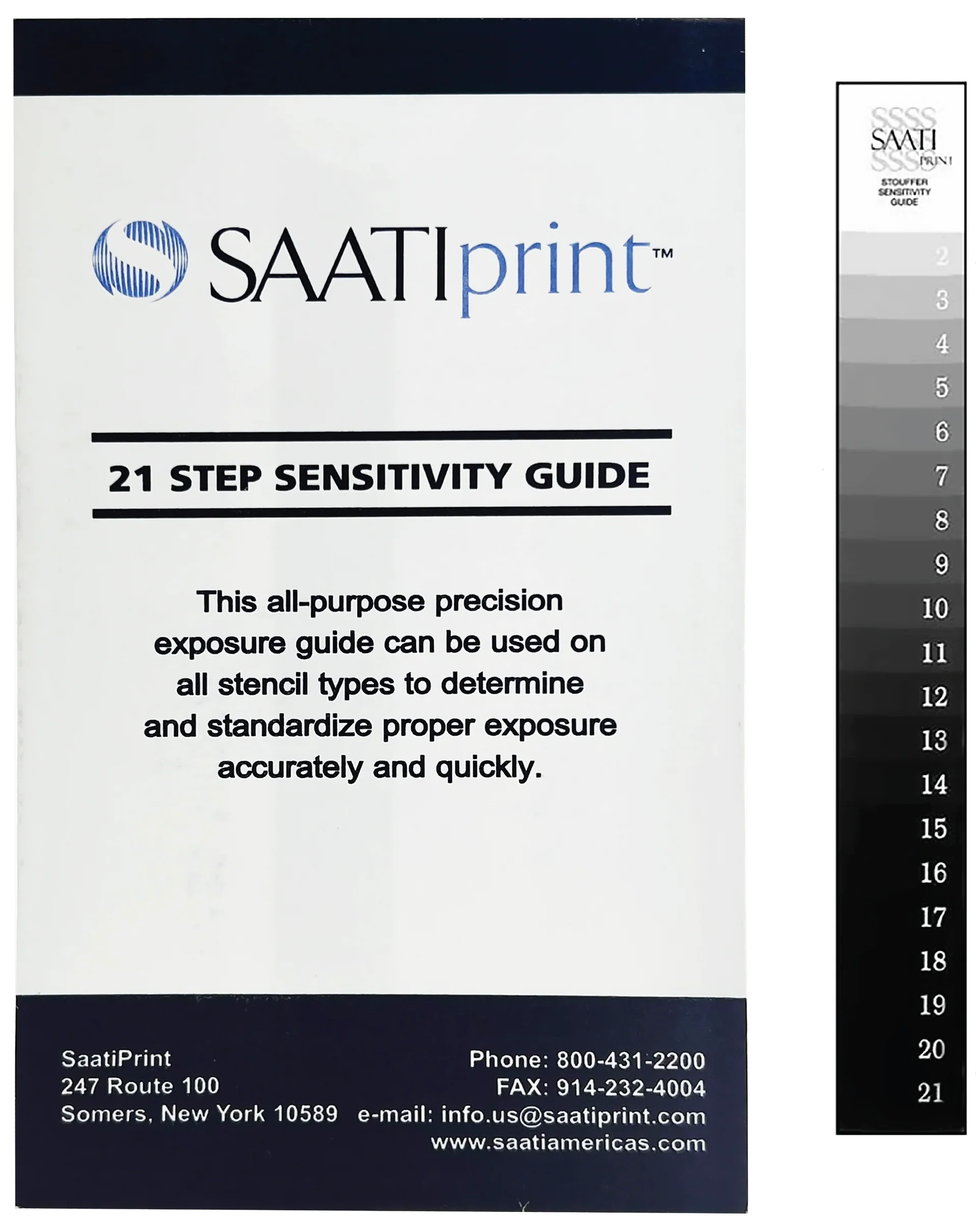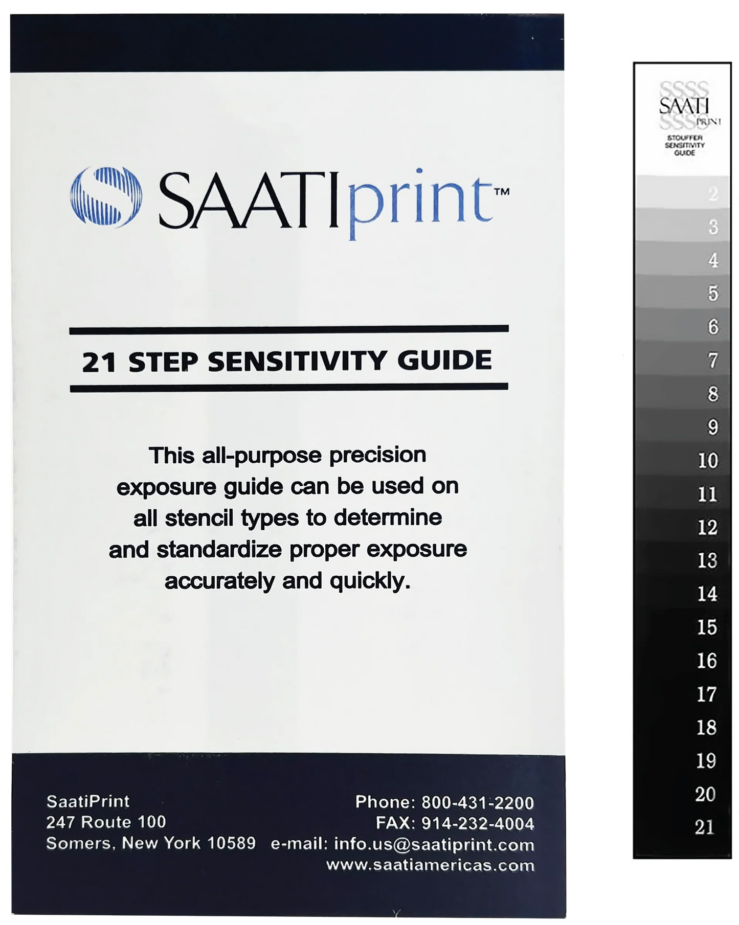 The 21-Step Sensitivity Guide is designed for creating screen printing frames, helping determine the optimal UV exposure time for your screen mesh and emulsion. Using this exposure calculator prevents under- or over-exposure, ensuring consistent stencil quality.