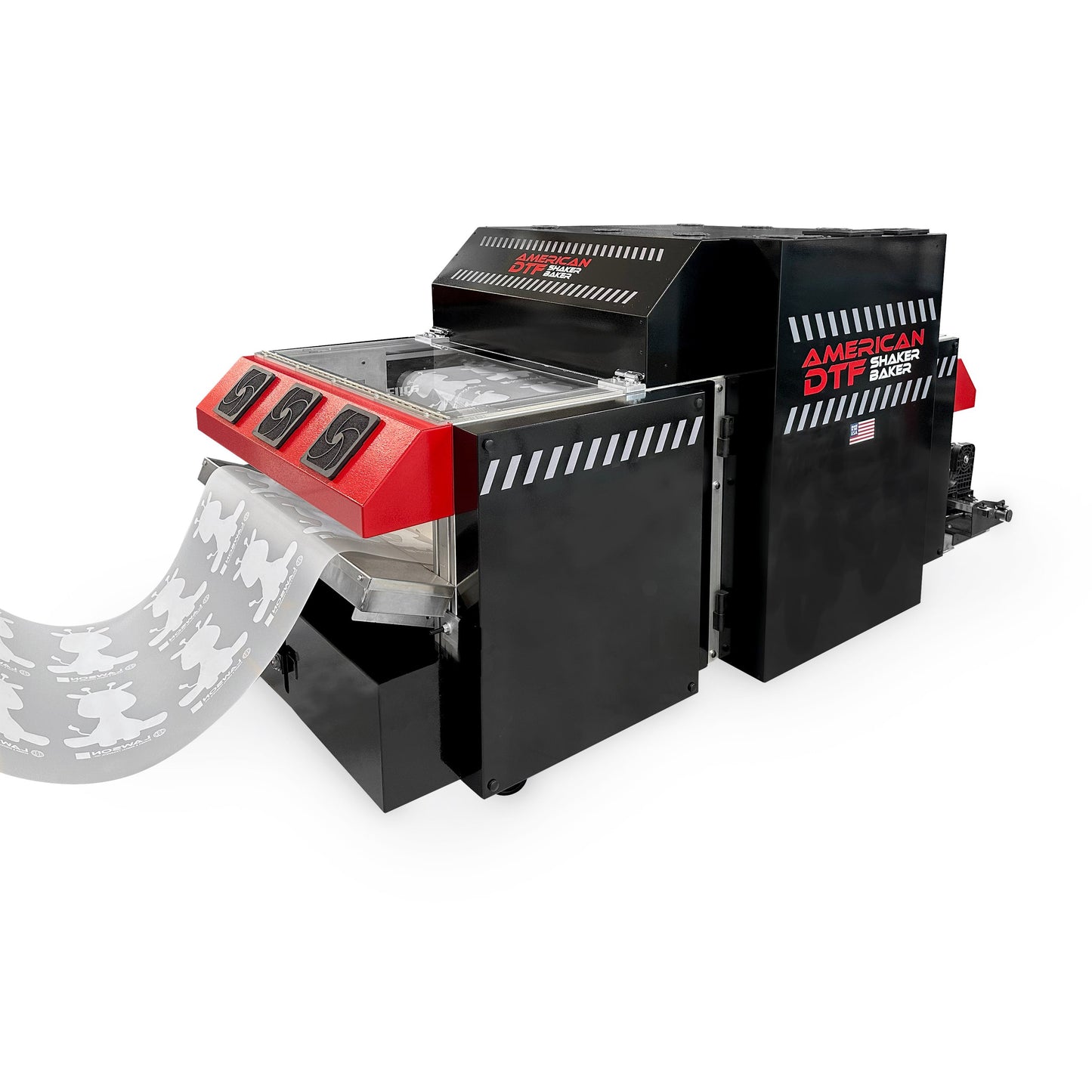 Designed with the utmost attention to detail, the American DTF Shaker/Baker is engineered to flawless powder and cure DTF transfers roll-to-roll up to 24" wide. With its advanced technology, this production-ready machine eliminates the labor-intensive process of hand powdering DTF images, saving you valuable time and effort.