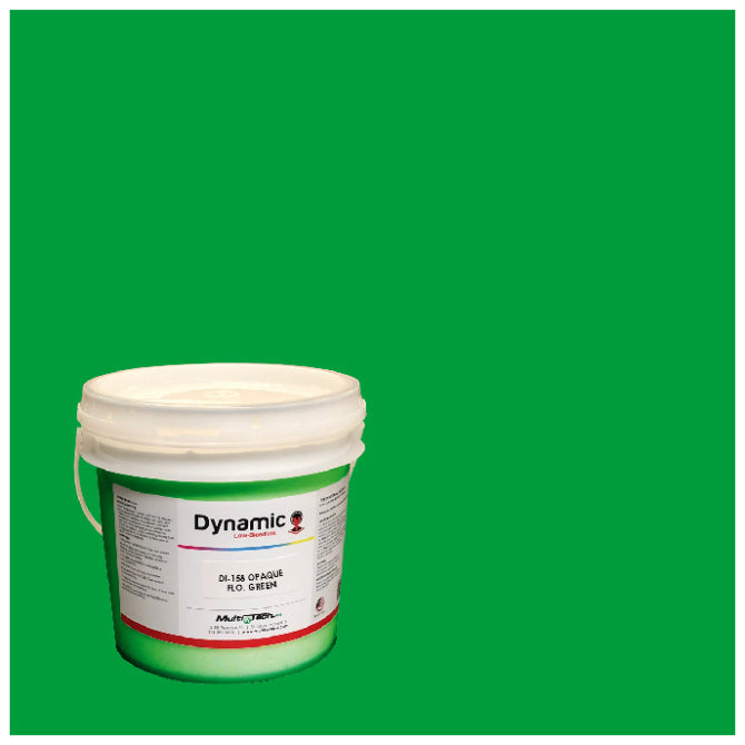 Dynamic Ink Fluorescent Green DI-158 LB is a premier plastisol screen printing ink, offering superior opacity and bleed resistance on polyester, 50/50 blends, and other fabrics. This low-cure ink, curing at 270–280°F, helps eliminate dye migration on even the most challenging “bleeder” fabrics.